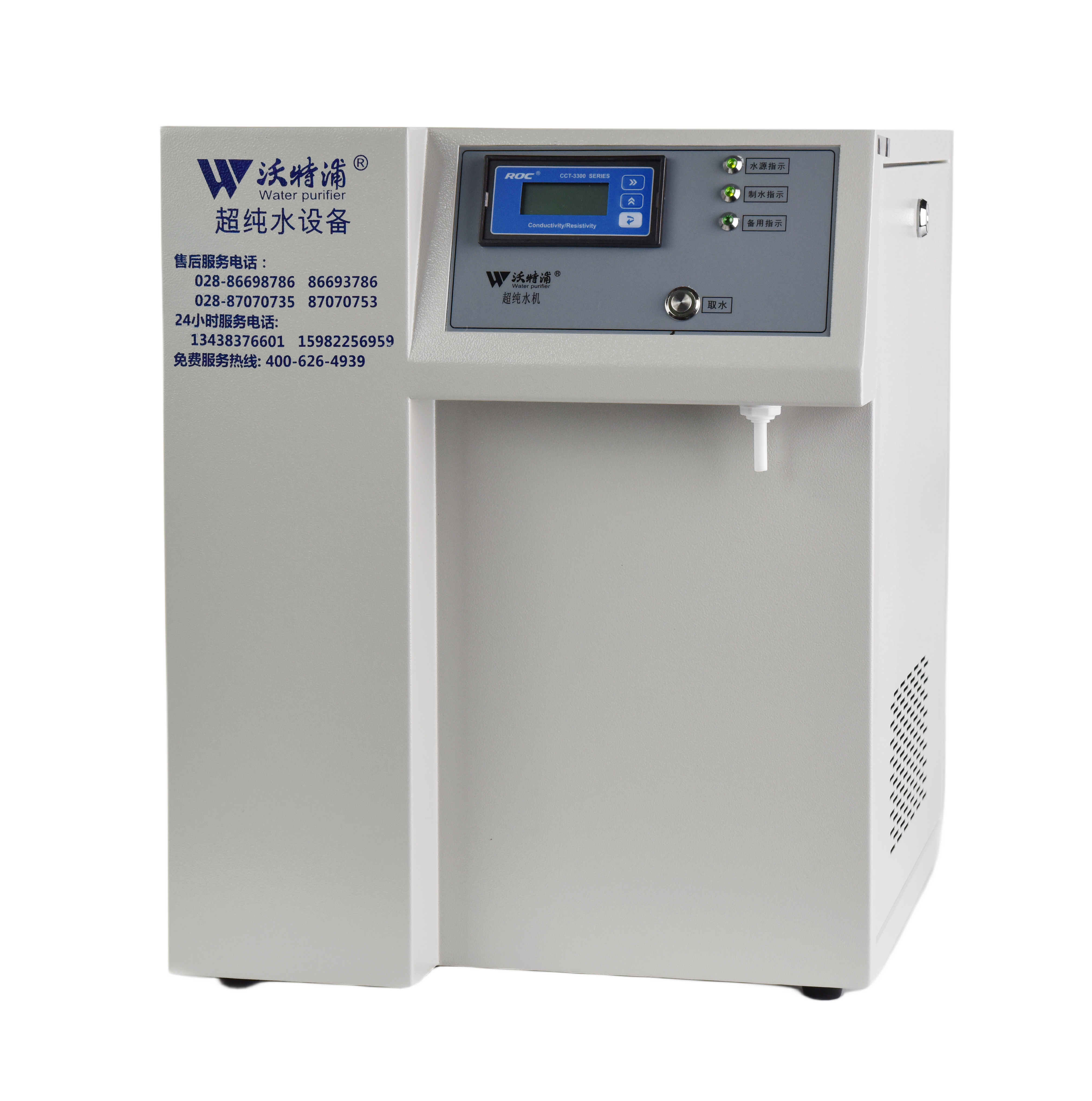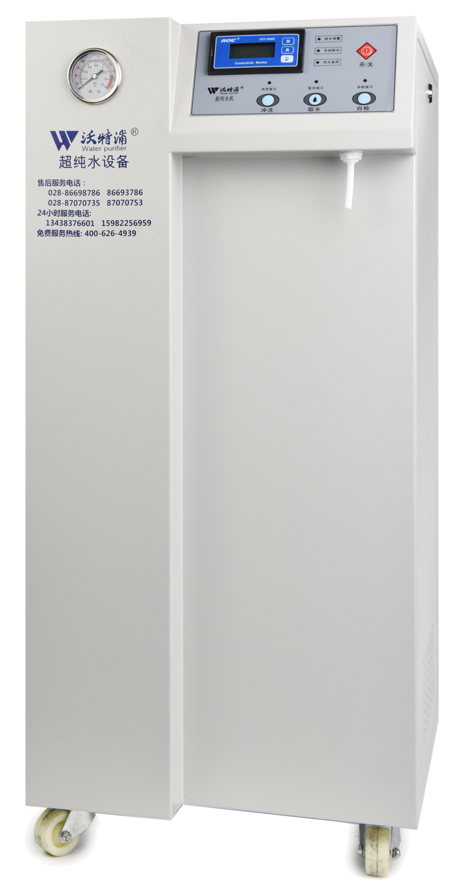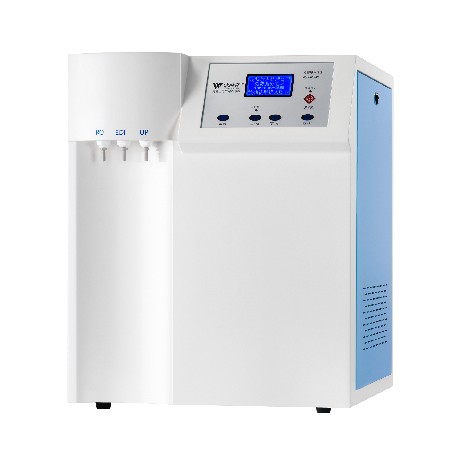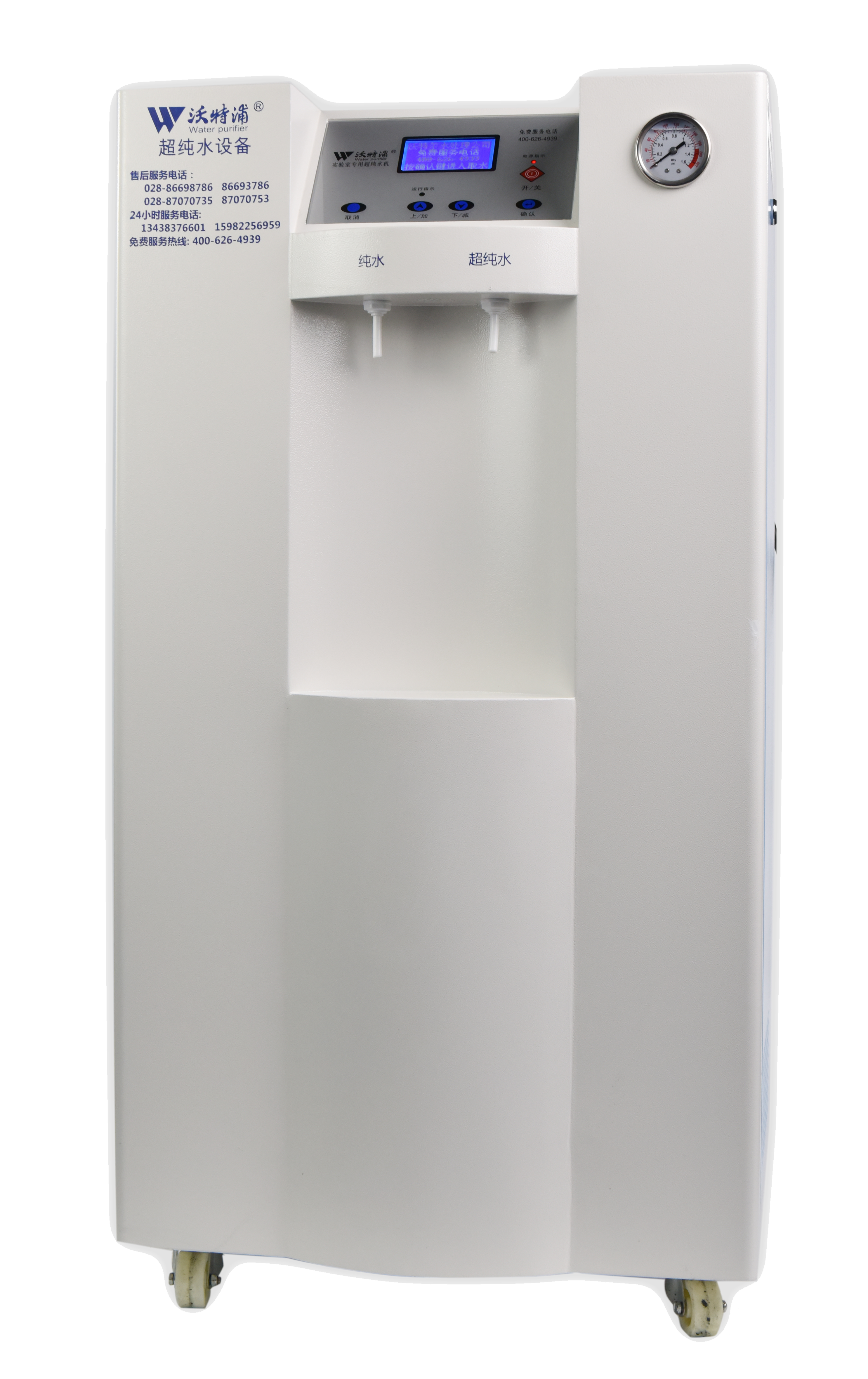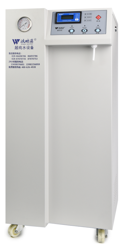 采用雙波長紫外消解系統(tǒng),除熱源超濾膜組件,采用進口離子交換樹脂過濾,使超純水能滿足各種實驗要求。
